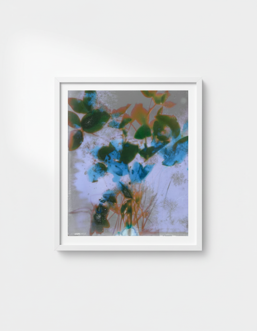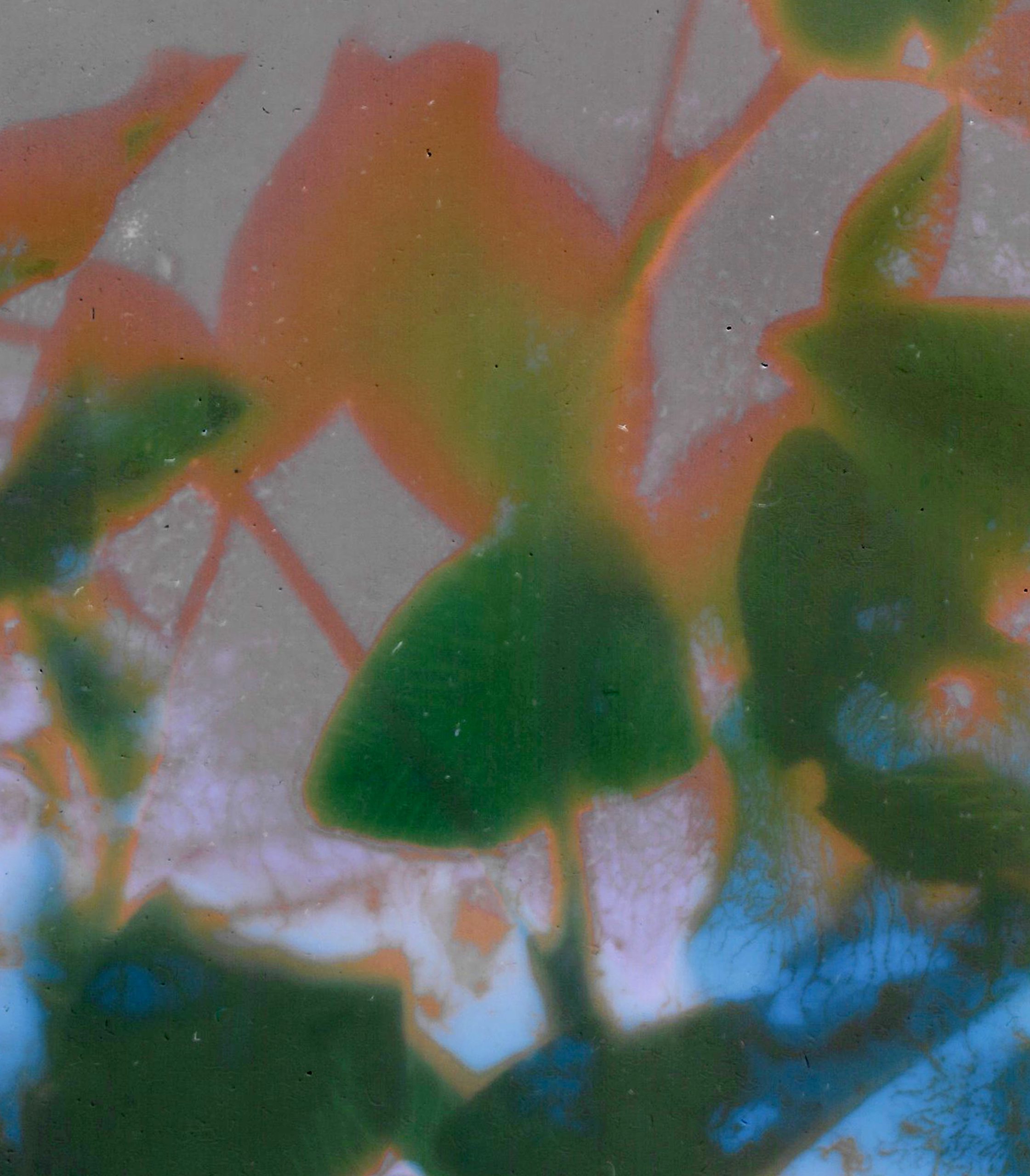 These lumen prints are created by placing red clover on vintage sheet film and exposing the film in the sun. In this series, Rizosphere, I am making lumen images with plants that can tolerate hight levels of metals in the soil, even storing metals in their foliage. Red clover is a hyperaccumulator of both zinc and the chemical naphthalene.